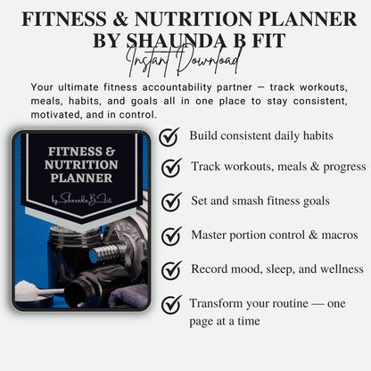 Shaundafit Fitness & Nutrition Planner – Digital Wellness Journal to Track Habits, Meals & Workouts